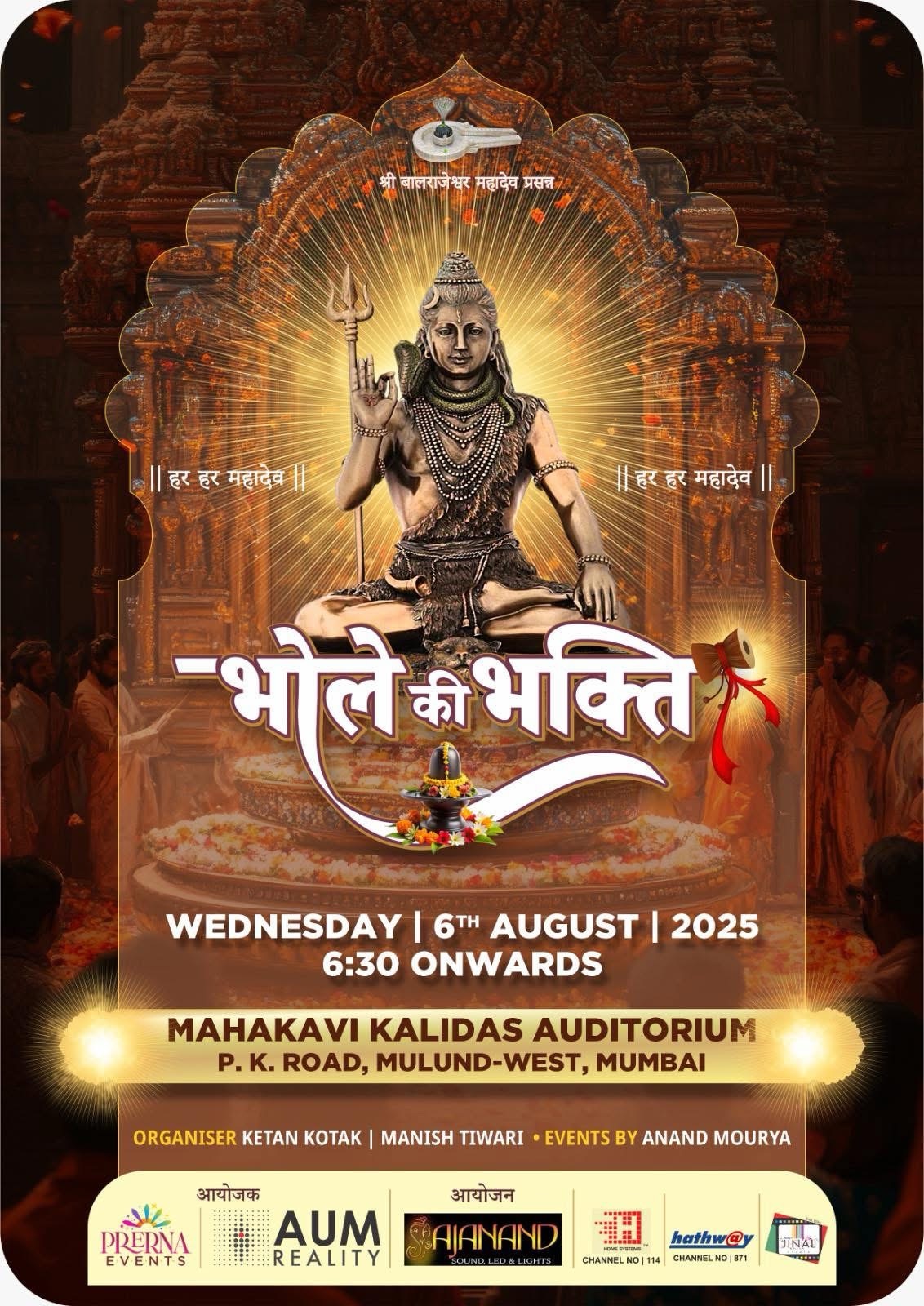 ‘भोले की भक्ति’ भजन संध्या: शिव आराधना में लीन होगी मुलुंड नगरी, 6 अगस्त को कालीदास में होगा भव्य आयोजन