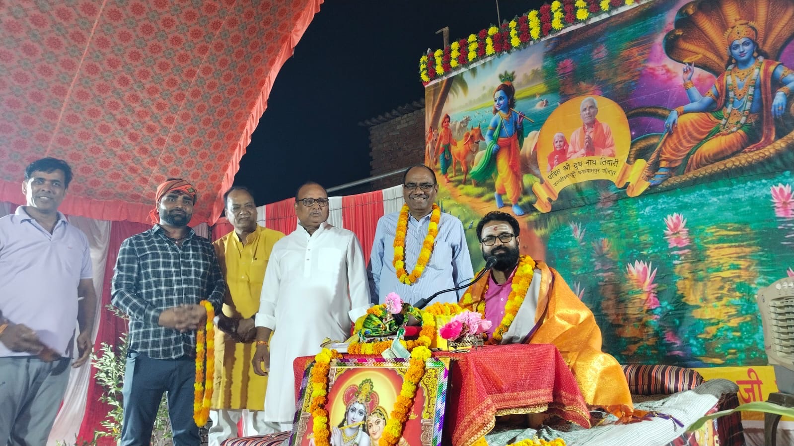 शनिवार 17 मई से शुरु हुई भगवत के व्यास पंडित धर्मराज तिवारी हैं। उनके मुख से निकली कथा ग्रामवासियों को बहुत पसंद आ रही है। शनिवार, 17 मई से शुरु हुई कथा प्रतिदिन 4 बजे से 7 बजे तक चल रही है। गया जगन्नाथ जी के भात का आयोजन पंडित दूधनाथ तिवारी एवं समस्त तिवारी परिवार ने किया है। कथा के दूसरे दिन उपस्थित रहने वाले लोगों में कमला प्रसाद तिवारी (बड़े बाबू), पूर्व प्रधान राम जियावन तिवारी, समाजसेवी रामजी उपाध्याय, वरिष्ठ पत्रकार शिवपूजन पांडे, समाजसेवी ओमप्रकाश मिश्रा, दूधनाथ तिवारी, राजदेव तिवारी, दीनानाथ तिवारी, दैनिक यशोभूमि के संपादक श्रीनारायण तिवारी, विनय तिवारी, पंडित सूर्यप्रकाश तिवारी (पप्पू), पंडित रोहित मिश्रा, छत्रपाल तिवारी, परमानंद तिवारी, ग्राम प्रधान घनश्याम तिवारी, रोहित तिवारी, महेश तिवारी, ईशनारायण दूबे, प्रेम नारायण दूबे, सुरेश तिवारी, संतोष तिवारी, मनोज तिवारी, संदीप तिवारी, प्रदीप तिवारी, सुशील तिवारी, अंकित तिवारी, साहिल तिवारी शान तिवारी, अशोक सिंह, राजाराम दूबे, संतोष तिवारी (पिंटू), राजेश तिवारी, खेलाडी गुप्ता, प्रमोद गुप्ता, दीपक तिवारी, रविंद्र तिवारी,