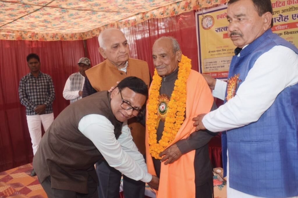 प्रतापगढ़। जनपद के पट्टी तहसील स्थित आसपुर देवसरा ब्लॉक अंतर्गत पूर्व माध्यमिक विद्यालय, धौरहरा में एक्सेस फॉर चेंज इनिशिएटिव फाउंडेशन, एनजीओ, मुंबई के तत्वावधान में संस्था के डायरेक्टर महाराष्ट्र राज्य आदर्श शिक्षक पुरस्कार से सम्मानित पूर्व शिक्षक भारत आर पांडेय तथा संस्था के संस्थापक एवं सीईओ ,डायरेक्टर अभिषेक भारत पांडेय के संयोजन तथा नियोजन में बृहत पैमाने पर राष्ट्रीय, राज्य स्तरीय शिक्षाविदों, समाजसेवियों के सम्मान सत्कार समारोह तथा जरूरत मंद व्यक्तियों में कंबल वितरण का आयोजन किया गया।