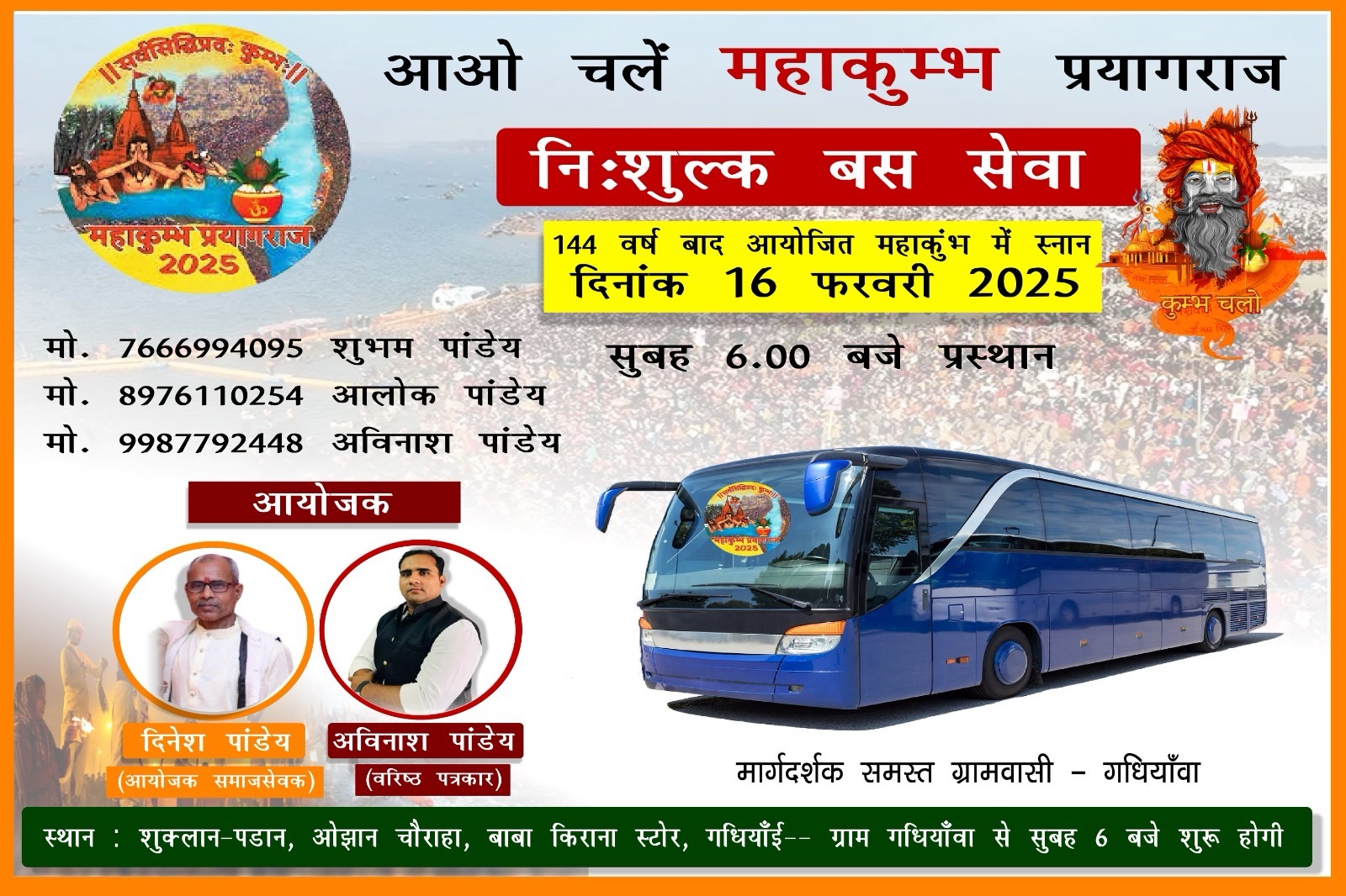 गधियाँवा से कल रविवार की सुबह 6 बजे निकलेगी निःशुल्क महाकुंभ स्नान बस सेवा यात्रा