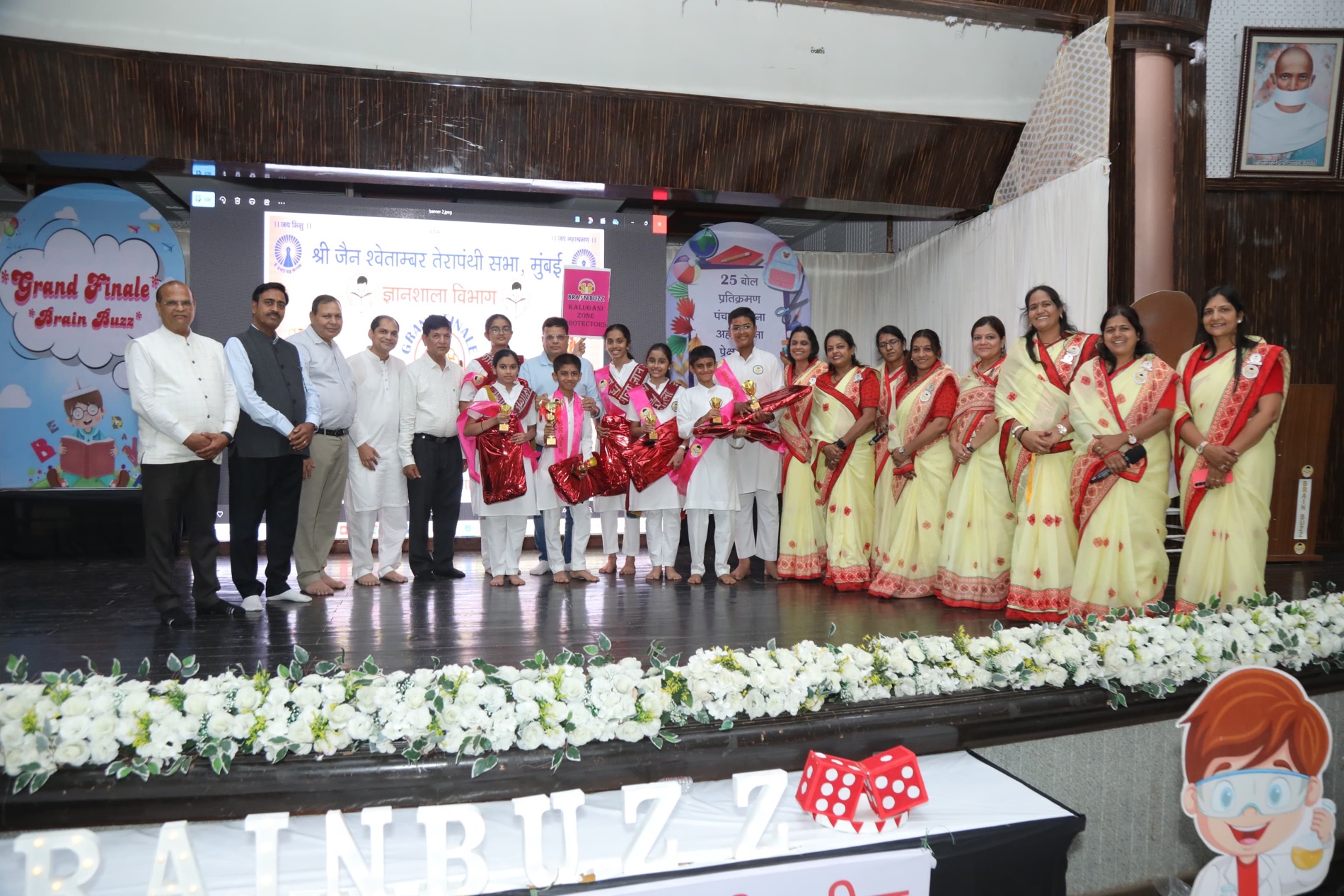 मुंबई के कांदिवली स्थित राजभवन में श्री जैन श्वेतांबर तेरापंथी सभा मुंबई के तत्वावधान में और ज्ञानशाला आंचलिक संयोजिका के मार्गदर्शन में “BRAIN BUZZ – ज्ञान की जीत सवालों के बीच” क्विज प्रतियोगिता का भव्य आयोजन संपन्न हुआ। कार्यक्रम की शुरुआत मुनि श्री रजनीश कुमार जी के मंगल पाठ से हुई। राष्ट्रीय कार्यकारिणी सदस्य प्रो. रत्ना जी कोठारी ने नमस्कार महामंत्र और ज्ञानशाला गीत का संगान किया, जबकि घाटकोपर जोन की स्वर चौबीसी विजेता टीम ने सुमधुर प्रस्तुति दी।