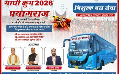 एनबीडी प्रयागराज, माघी कुंभ 2026 के पावन अवसर पर ग्राम गधियाँवा से प्रयागराज कुंभ स्नान हेतु ग्रामवासियों के लिए निःशुल्क बस सेवा का आयोजन किया गया है। यह बस सेवा शनिवार, 31 जनवरी 2026 को सुबह 6 बजे ग्राम गधियाँवा से प्रयागराज के लिए प्रस्थान करेगी। आयोजकों ने बताया कि विगत वर्षों की भाँति इस…