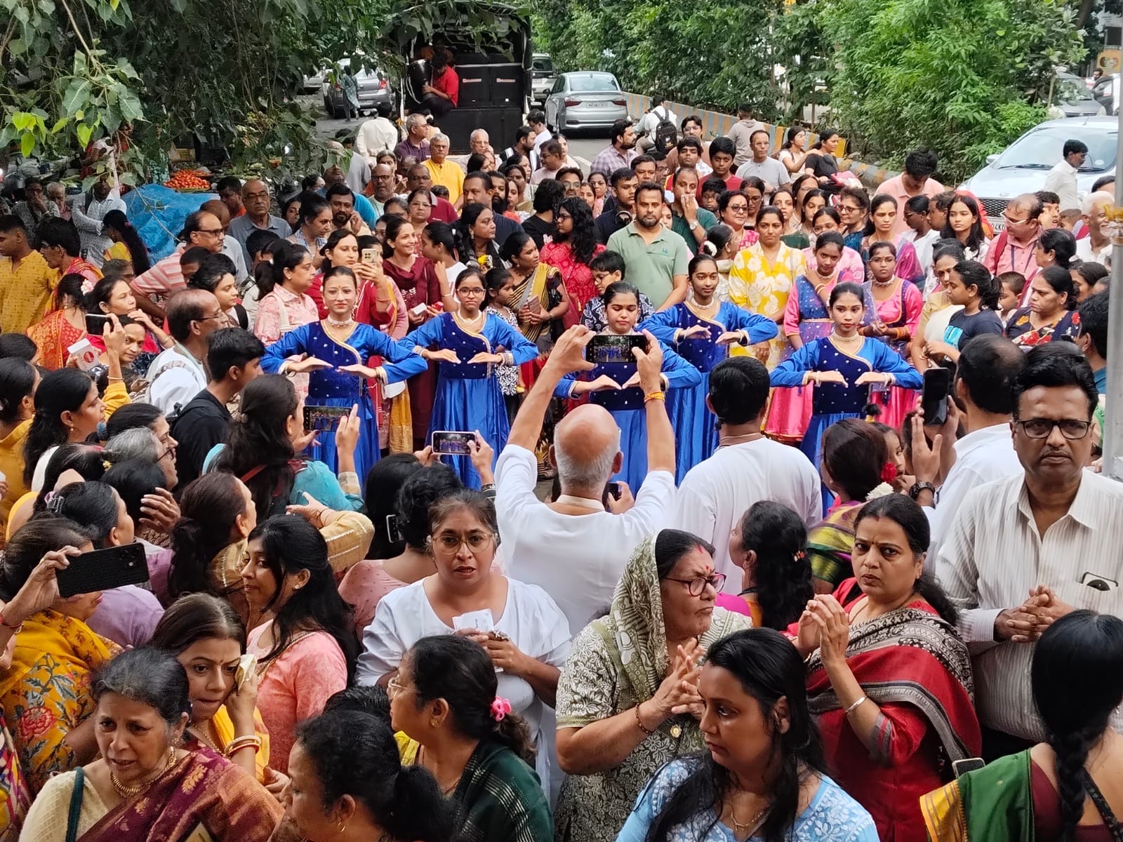 रथ यात्रा की शुरुआत आनंद नगर टीएमसी ग्राउंड से हुई, जहां भगवान को 108 से अधिक भोग अर्पित किए गए। कलाकारों द्वारा प्रस्तुत आध्यात्मिक नृत्य ने उपस्थित भक्तों को भावविभोर कर दिया। बारिश के देवता इंद्र ने जैसे भक्तों की भावना देख बादलों को रोक लिया और हल्की फुहारों के बीच भक्तिमय वातावरण और भी आनंददायक हो गया। पूरे मार्ग में हरे कृष्ण महामंत्र की गूंज और जगह-जगह प्रसाद वितरण ने वातावरण को पावन बना दिया। रथ रात्रि 8:30 बजे जगन्नाथ देवस्थानम पहुंचा, जहां हजारों भक्त पहले से भगवान के दर्शन हेतु प्रतीक्षा कर रहे थे। रथ के साथ हजारों श्रद्धालु चल रहे थे और लगभग 4000 से अधिक भक्तों ने प्रसाद ग्रहण किया।